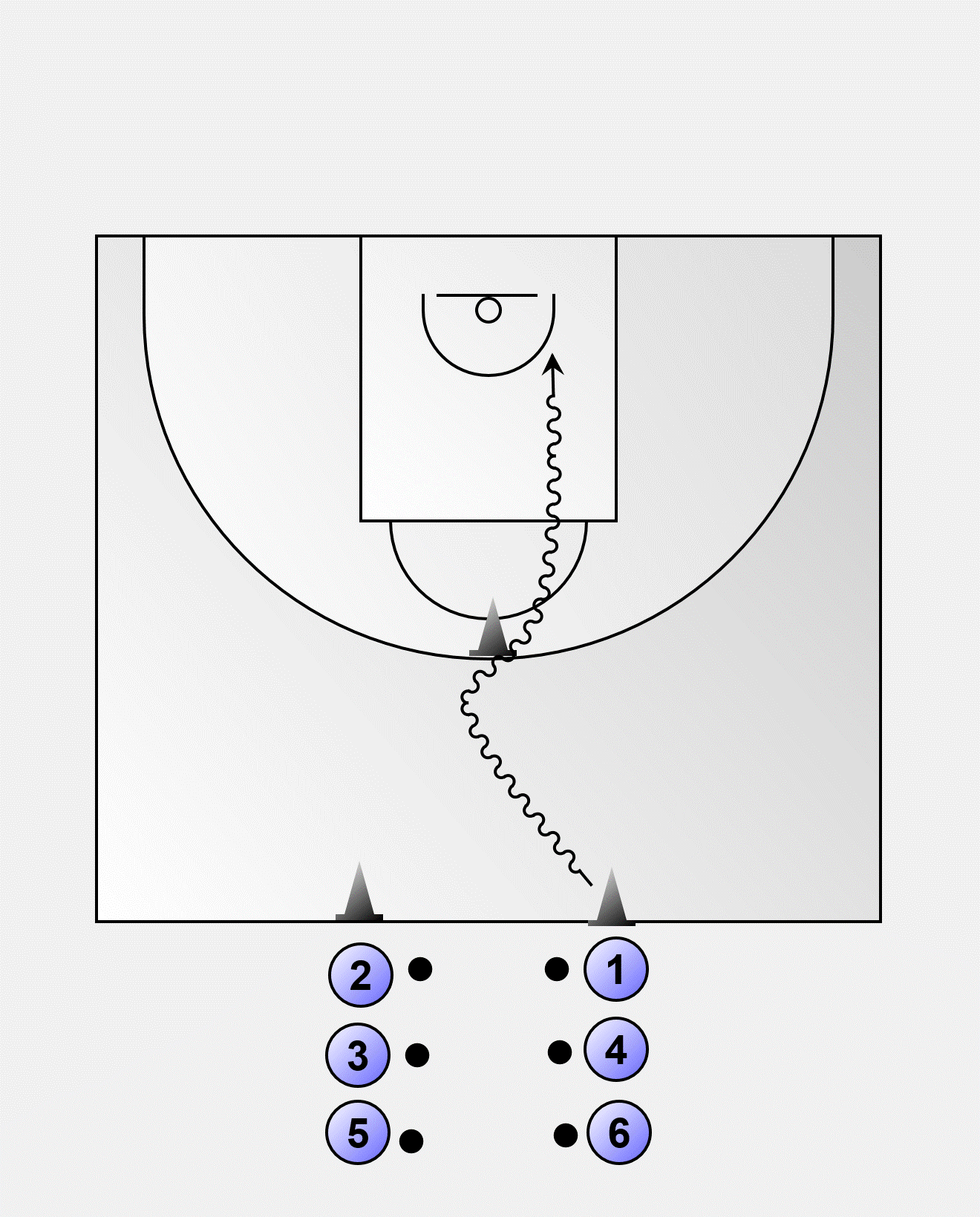 In order to make the practice more effective and faster, the first partner who comes to the half court in the form of a race is asked to win.