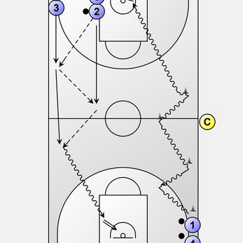 The 2 defending duo goes out to attack again. The attacking duo stays in defence under the basket after the attack.